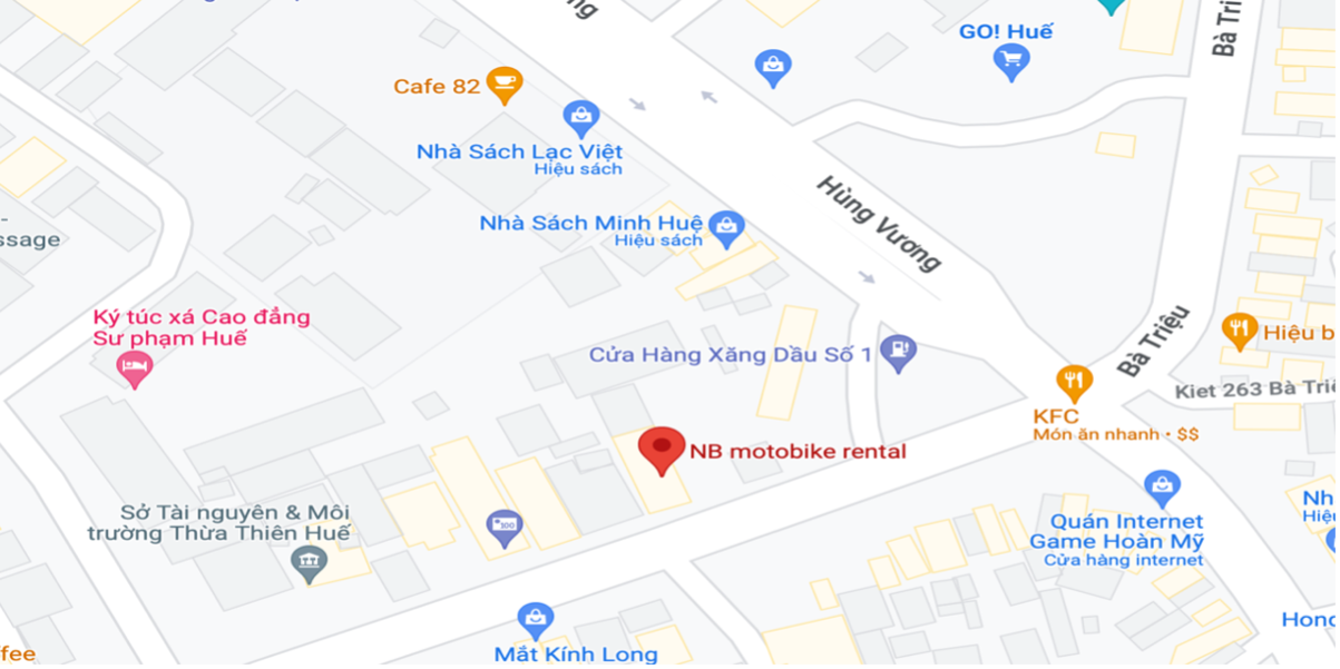• SH motorbike rental có địa chỉ ngay trung tâm thành phố Huế nên khi có nhu cầu thuê xe bạn sẽ được nhân viên của SH motorbike rental giao xe tận nơi, đặc biệt hơn anh chủ có rất nhiều kinh nghiệm về du lịch phượt nên khi thuê xe máy tại đây, bạn sẽ được anh hướng dẫn nhiệt tình những địa điểm đang làm mưa làm gió trong giới trẻ cố đô. Ngoài ra, anh còn tư vấn bạn chọn loại xe thích hợp với từng địa điểm phượt mà bạn đang có ý định đi.